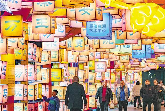 1月4日,位于江北区的金源时代购物广场,艺术长廊悬挂着不少灯笼。重庆是全国夜间经济最活跃的城市之一,春节临近,中心城区各商圈提前以灯会、LED大屏、灯光艺术体验等形式营造出浓郁的传统佳节氛围,丰富文旅市场体验、激发消费增长动能。