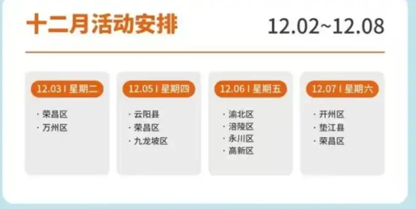 12月2日,重庆市人力资源和社会保障局发布消息,本周(12月2日至12月8日),全市共13场大学生就业创业活动。其中,包括重庆市2025届普通高校毕业生计算机类网络招聘会、职引未来—2024年全国大中城市巡回招聘重庆站涪陵区秋季招聘活动、百万高校毕业生等青年留渝来渝就业创业对接服务活动(永川区专场)等,期待你的参与!