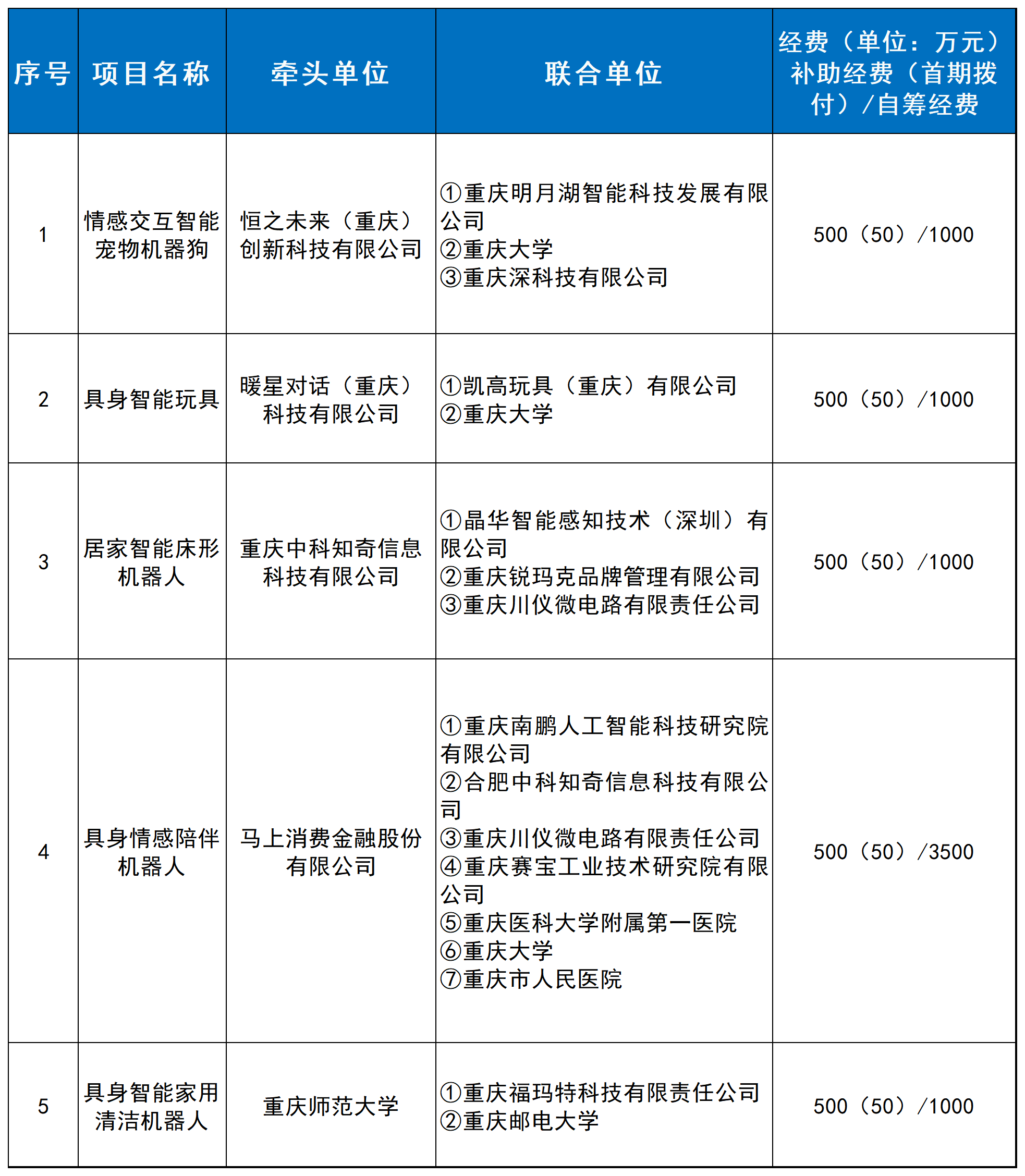 (具身智能机器人方向第二批)立项清单