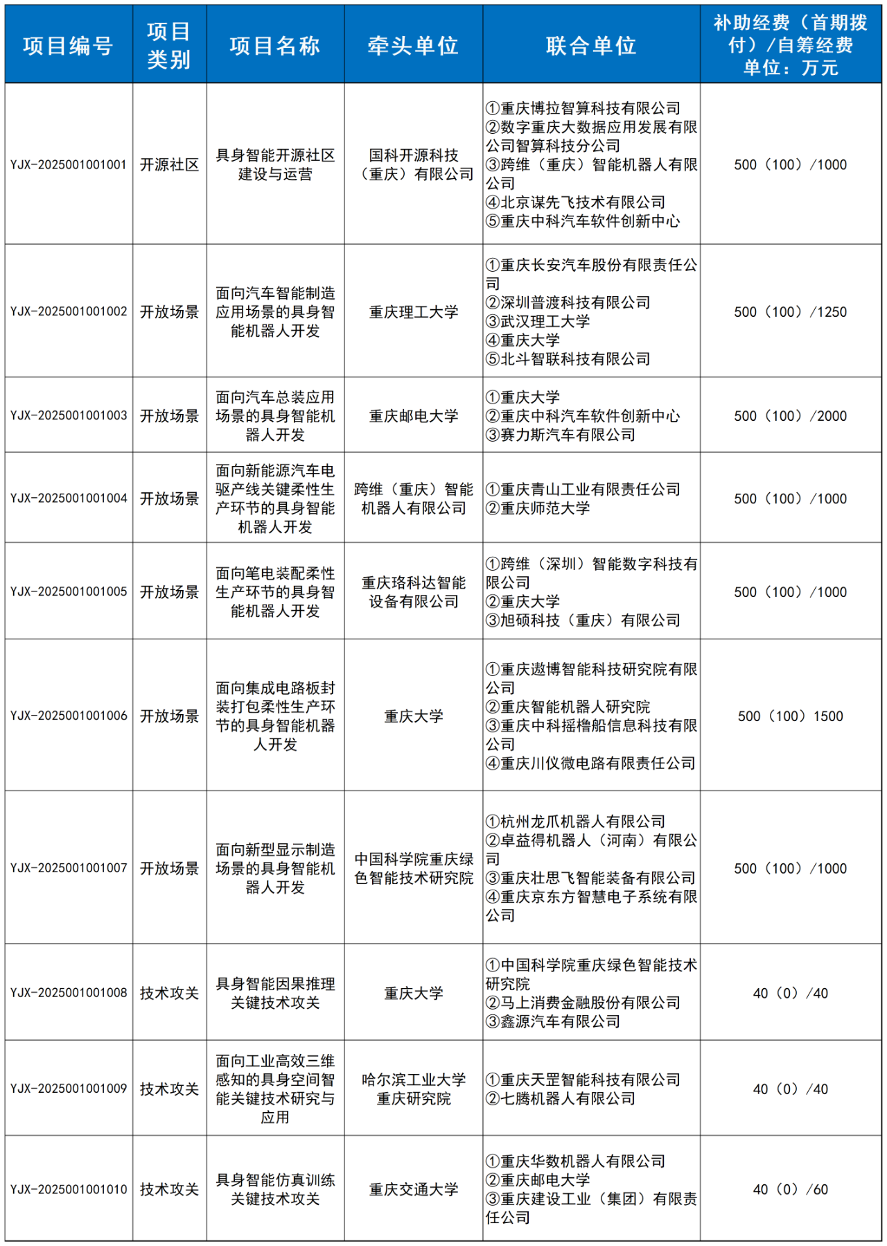 (具身智能机器人方向第一批)立项清单